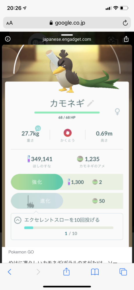 ポケモンgo カモネギをネギガナイトに進化させる方法 相棒にしてエクセレントスローの条件を満たすことで進化できるようになる 使い方 方法まとめサイト Usedoor